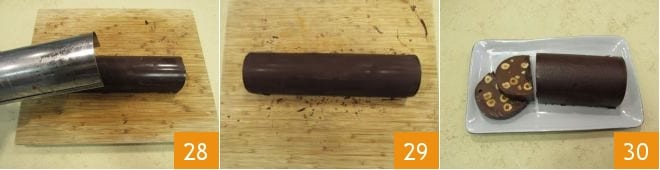 Remettez le tout au réfrigérateur et laissez bien durcir pendant au moins 6 heures. Le lendemain, il suffira de taper le moule sur une planche à découper pour détacher le nougat des morts au café 28. Maintenant qu'il est prêt, il ne vous reste plus qu'à le trancher et le consommer (29-30).