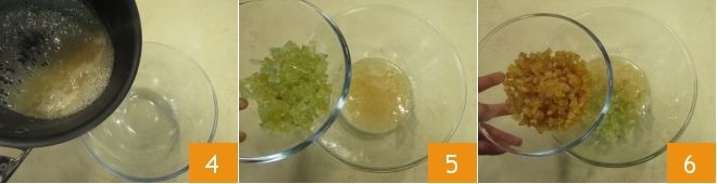 À ce stade, transférez dans un bol en pyrex 4. Ajoutez le cédrat confit 5 et l'orange confite 6