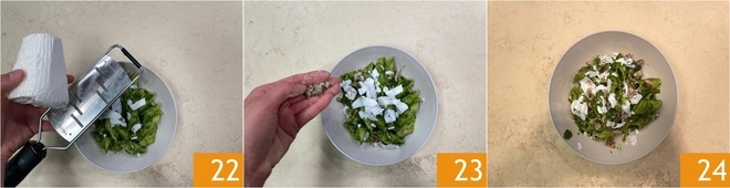 Finissez avec de la ricotta salée 22 et des châtaignes émiettées 23. Vos pennoni sont prêts, dégustez-les immédiatement 24!
