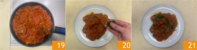 Le bouilli à la picchiapò est prêt 19, servez-le avec beaucoup de persil frais haché 20 et un filet d'huile d'olive crue 21.