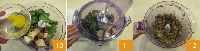 et enfin ajoutez également l'œuf 10. Mixez le tout jusqu'à obtenir un mélange homogène et compact 12. Ajoutez à votre convenance un peu de poivre moulu. Il ne sera pas nécessaire d'ajouter du sel supplémentaire à la pâte car les câpres, les olives et le pain sont déjà suffisamment salés.