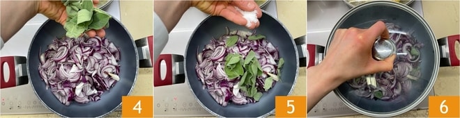 Ajoutez les feuilles de sauge 4, salez 5, poivrez et faites cuire à feu moyen-doux avec le couvercle pendant 15 minutes, en remuant de temps en temps 6.
