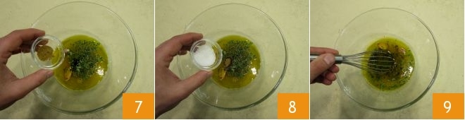 le cumin 7, le gros sel 8 et mélangez le tout avec un fouet ou une cuillère 9.