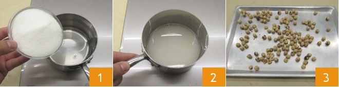 Pour réaliser le sorbet aux noisettes, vérifiez tout d'abord si le bol de la sorbetière doit être réfrigéré, le cas échéant, il devra être placé au congélateur au moins une nuit. À ce stade, préparez le sirop : versez dans une casserole 150 g d'eau et les 200 g de sucre 1 et portez à ébullition pour que le sucre se dissolve complètement 2, puis éteignez le feu et laissez refroidir. Répartissez les noisettes sur une plaque et faites-les griller dans le four statique préchauffé à 170° pendant environ 7-8 minutes 3; alternativement, vous pouvez les griller dans une poêle pendant 5 minutes. Dans les deux cas, veillez à ne pas les brûler.