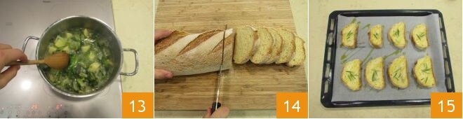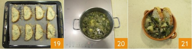 jusqu'à ce que le fromage soit fondu 19. À ce stade, la soupe sera également prête 20 et vous pourrez la servir accompagnée des croûtons au fromage 21.