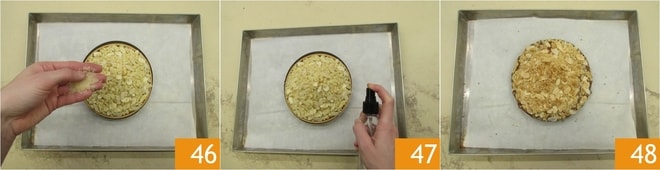 Saupoudrez de sucre de canne 46 et vaporisez la surface avec un peu d'eau 47. Faites cuire dans un four ventilé préchauffé à 165° pendant 35 minutes. Sortez la tarte du four et laissez-la refroidir 48.